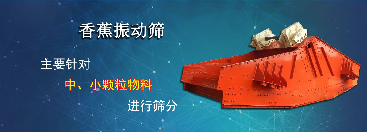 香蕉振動篩在入料端有一斜坡面,先以34°開始,緊接著以一定數目的角度下降到大約為10°的出料端為止。篩面采用不同傾角的折線形式,從入料端到出料端物料層厚度是不變。各段篩面上物料量與流速比值穩定、料層較高,呈現均勻狀態篩分效率顯著提高,比相同有效面積篩分機的處理量提高1-2倍,對于細粒含量高,特別是物料中料度占分級粒度尺寸小于1/2的物料含量較大時,香蕉型振動篩分機具有極高的篩分效率。